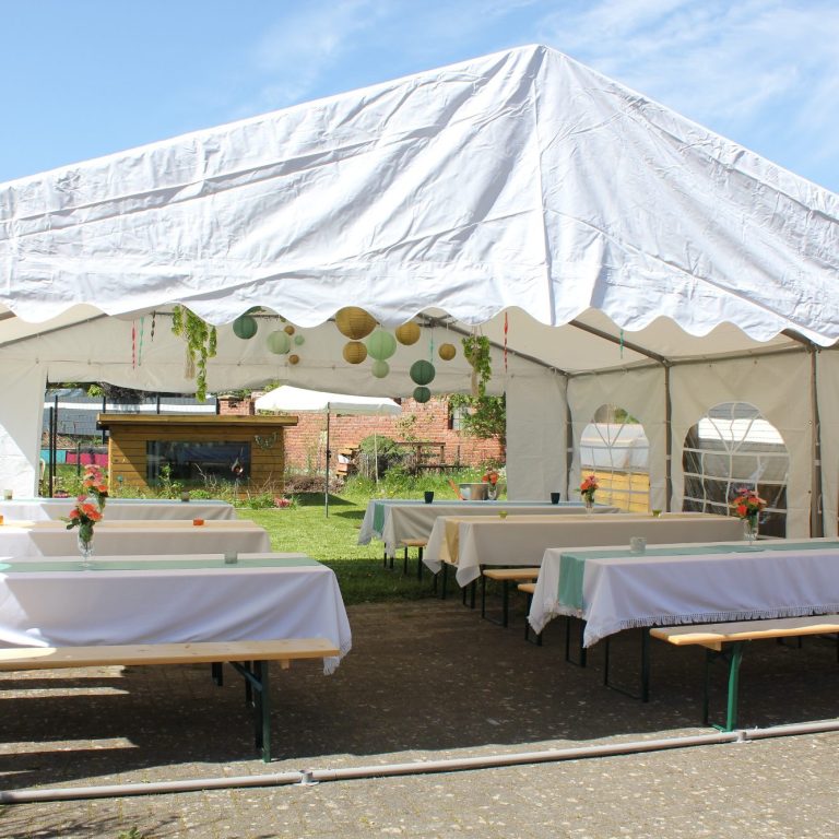 - Partyzelte: Für bis zu 30 Personen, einfach aufzubauen und perfekt für jedes Wetter.