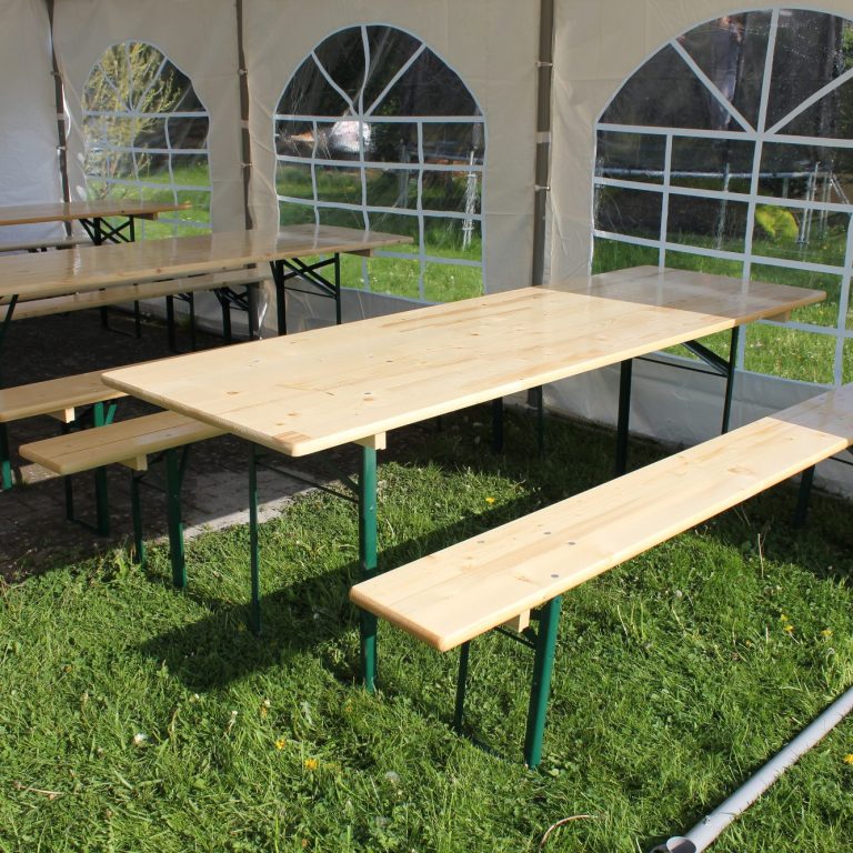 - Bierzeltgarnituren: Bequem und stabil, mit ausreichend Platz für Deko und Essen.